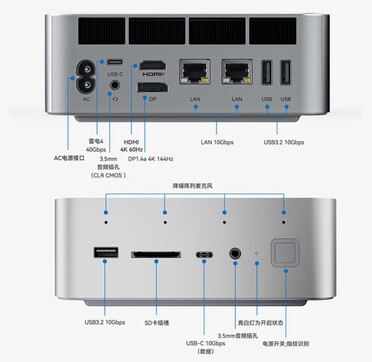 Der Mini-PC besitzt zwei USB-C-Anschlüsse, darunter einen mit Support für USB 4 (40 Gbit/s), dreimal USB-A, zwei 10 Gigabit Ethernet-Anschlüsse, HDMI, DisplayPort, zwei 3,5 mm Kopfhörer-Anschlüsse und einen SD-Kartenleser. Der Beelink GTi15 Ultra unterstützt Wi-Fi 7, Bluetooth 5.4, bis zu 96 GB DDR5-6.400-Arbeitsspeicher und zwei PCIe 4.0 M.2 SSDs.