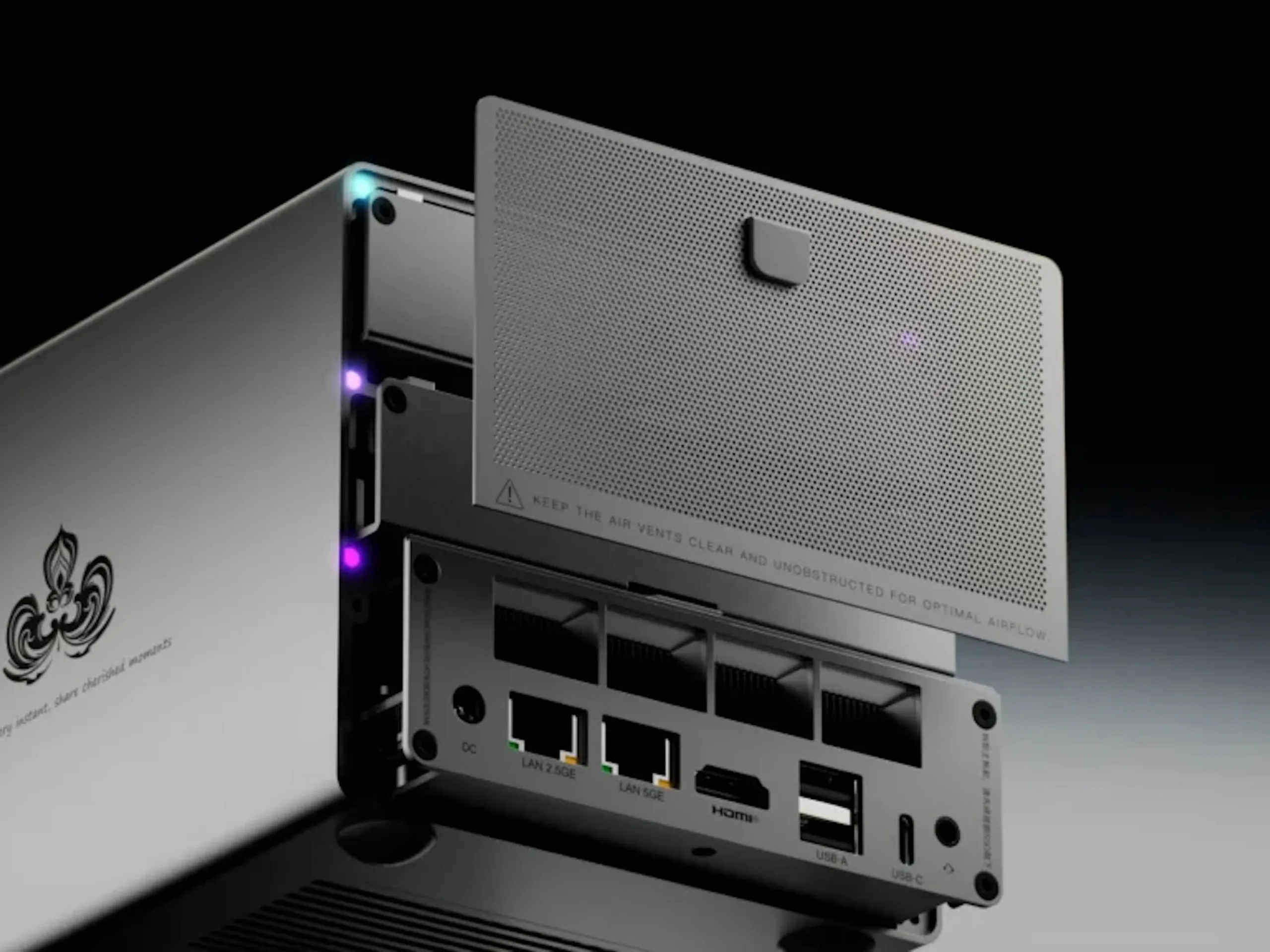 Herstellerangaben zufolge wird die Installation eines bis zu 72 Terabyte großen Speichers unterstützt. Es können drei M.2 2280-SSDs installiert werden, zudem können in den beiden Einschüben über dem Mainboard Festplatten oder SSDs im 3,5- oder 2,5-Zoll-Format installiert werden. Damit lassen sich große Datenmengen relativ günstig vorhalten. Die Netzwerkanbindung kann durchaus performant erfolgen. So stehen jeweils einmal Ethernet mit 5 und 2,5 GBit/s bereit, die beiden Anschlüsse lassen sich mithilfe von Link Aggregation bündeln - die vorhandene Netzwerkinfrastruktur muss eine so hohe Leistung dann aber unterstützen können, HDMI 2.1 steht bereit, die Ausgabe von Bildinhalten ist über USB Typ C ebenso möglich. WiFi 6 und Bluetooth 5.4 stehen bereit.