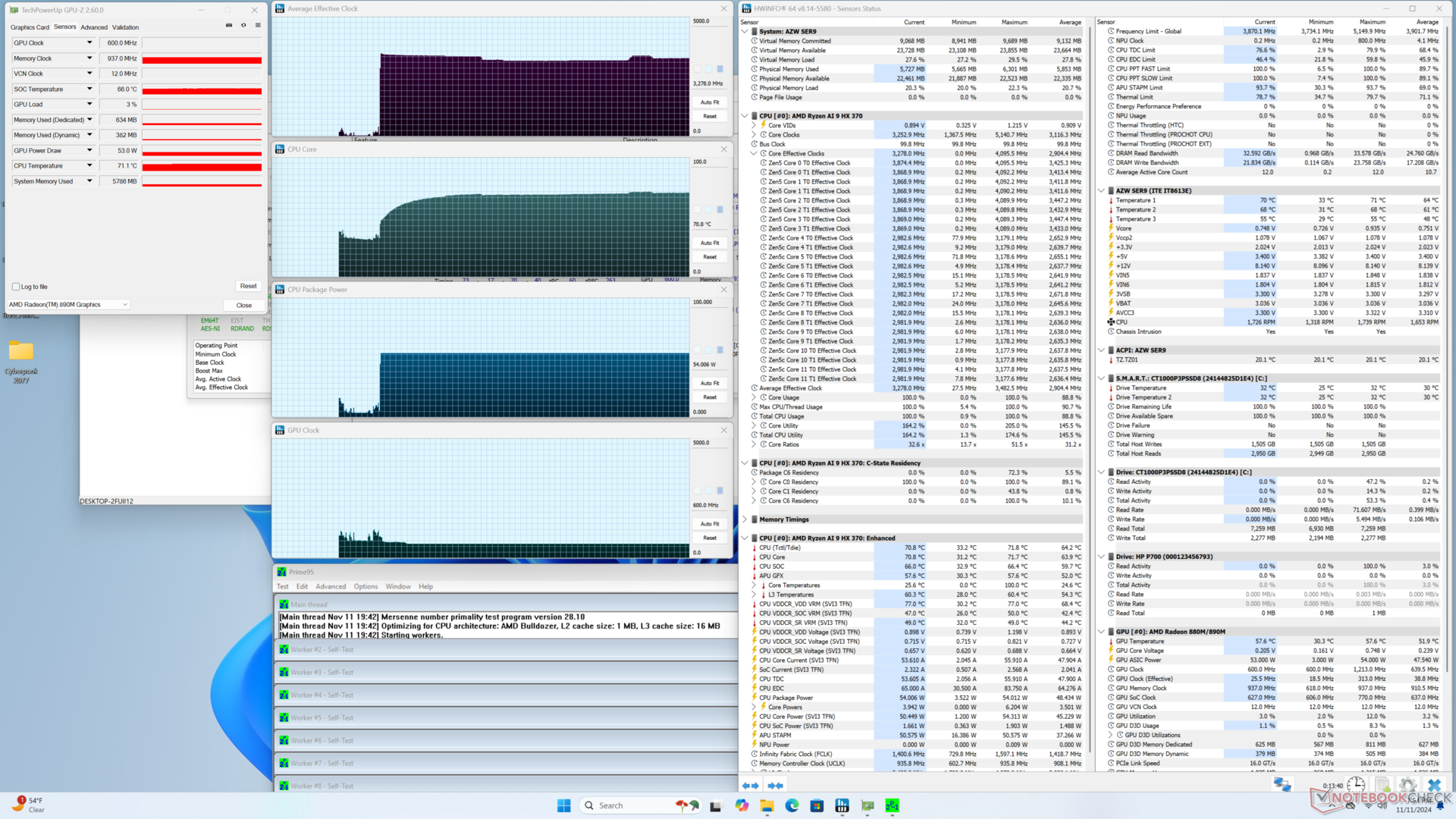 | Beelink SER9 Radeon 890M, Ryzen AI 9 HX 370, Crucial P3 Plus CT1000P3PSSD8 | Beelink SER8 Radeon 780M, R7 8845HS, Crucial P3 Plus CT1000P3PSSD8 | Beelink SEi11 Pro Iris Xe G7 96EUs, i5-11320H, Kingston NV1 SNVS/500GCN | MSI Cubi NUC 1M Iris Xe G7 96EUs, Core 7 150U, WD PC SN560 SDDPNQE-1T00 | GMK NucBox K9 Arc 7-Core, Ultra 5 125H, MasonSemi 1TB MC7000 | Asus NUC 14 Pro+ Arc 8-Core, Ultra 9 185H, Samsung PM9A1a MZVL21T0HDLU | |