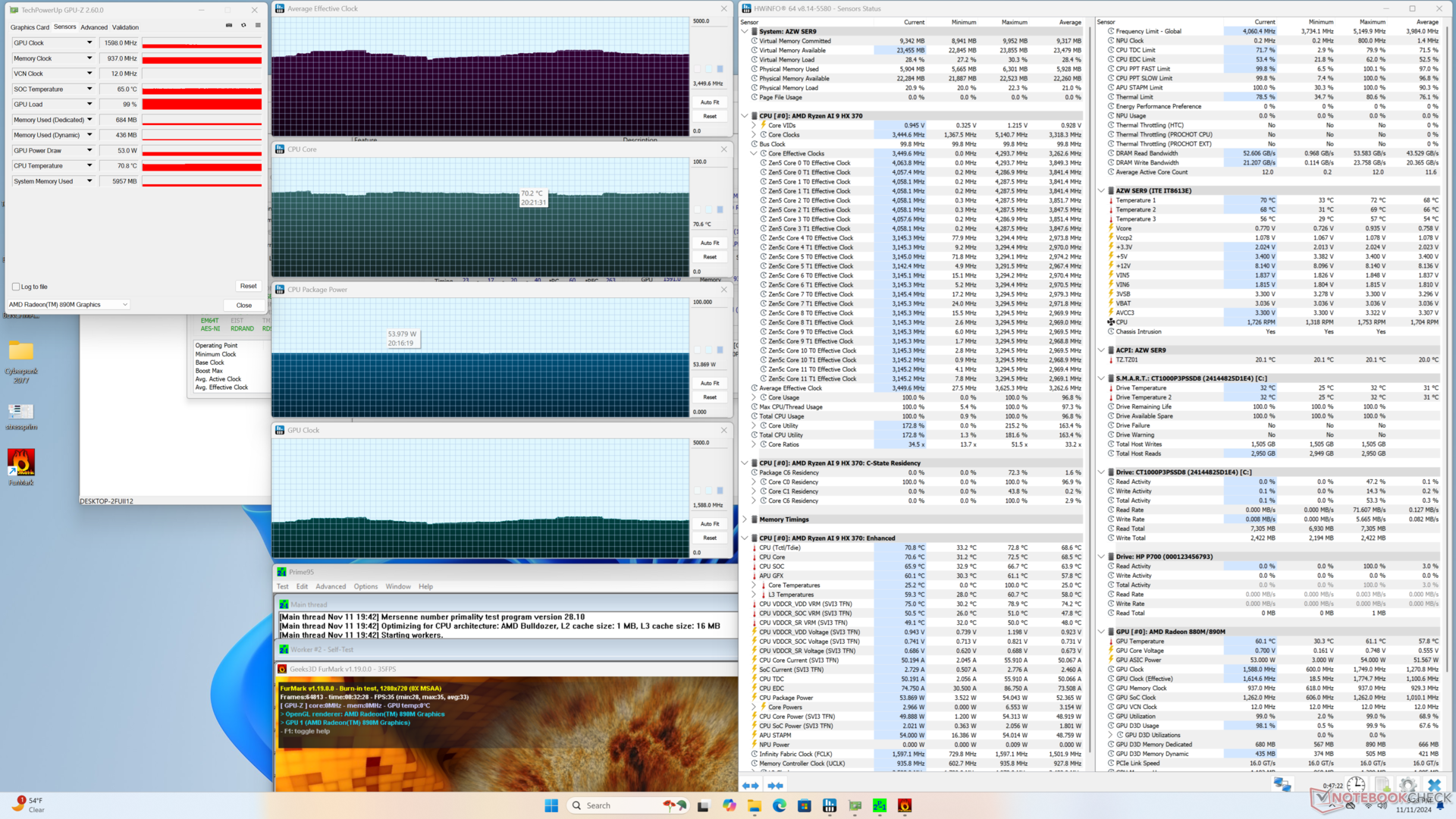 | Prime95 + FurMark Stress | 3.5 | 1598 | 71 |
