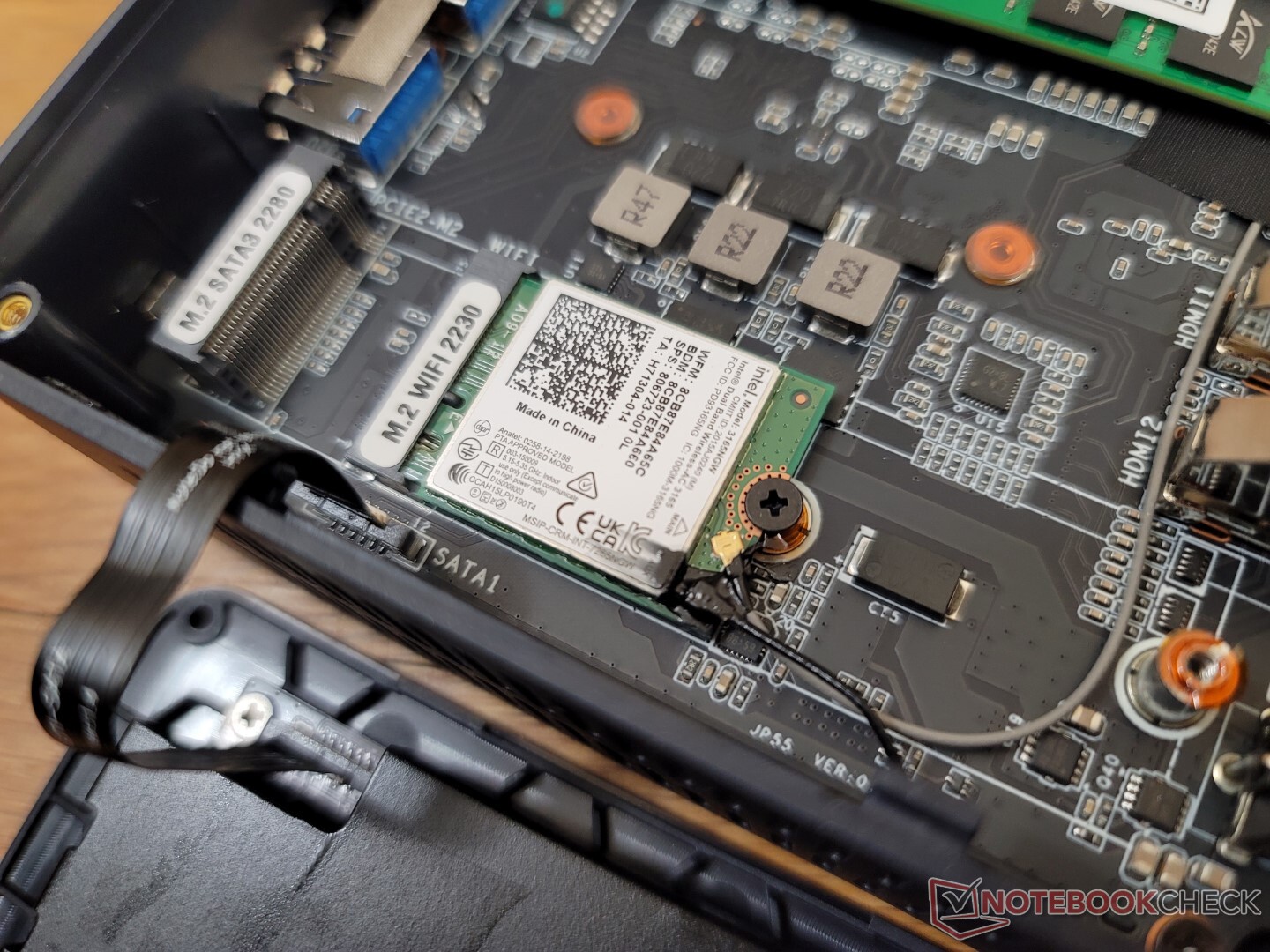 Der Nutzer hat direkten Zugriff auf den M.2-2280-SSD-Steckplatz, den 2,5-Zoll-SATA-III-Schacht, das WLAN-Modul und die 2x-DDR4-SODIMM-Steckplätze.