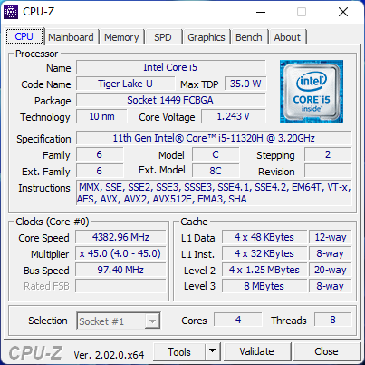 | Durchschnittliche Intel Core i5-11320H | |