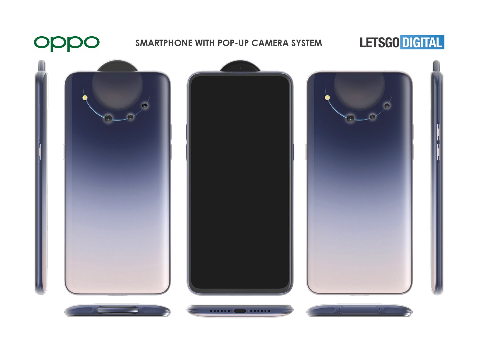 Zuletzt hat Oppo vor allem das Reno 3 Pro in China präsentiert, das allerdings auf ein Displayloch statt einer motorisiert ausfahrbaren Selfie-Cam an der Oberseite setzt. Ganz abgeschlossen haben die Chinesen das Thema Pop-Up-Cam aber offenbar noch nicht, wie das Bild oben zeigt. Es handelt sich dabei um einige der Bilder aus einem Oppo zugesprochenen Patent das die niederländischen Kollegen von LetsGoDigital ausgegraben haben.