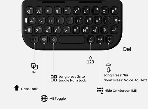 Die Tastatur besitzt insgesamt elf Funktionstasten, die es unter anderem erlauben, zehn Buttons in ein Numpad zu verwandeln, Siri zu aktivieren, die On-Screen-Tastatur für Emoji oder Sonderzeichen anzuzeigen, oder auch Tastenkombinationen zum Kopieren, Ausschneiden und Einfügen zu nutzen. Mit Befehlen wie cmd + h und cmd + Leertaste können Nutzer direkt zum Homescreen zurückkehren oder die Suche öffnen.