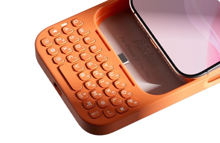 Das Apple iPhone 17 Pro Max (ca. 1.450 Euro auf Amazon) kann durch die neueste Schutzhülle von Akko um eine Tastatur erweitert werden, die über den USB-C-Port mit dem iPhone verbunden wird, sodass die Hülle nicht separat aufgeladen werden muss. Ein zusätzlicher USB-C-Anschluss an der Unterseite erlaubt es, das iPhone 17 Pro Max aufzuladen oder mit Zubehör zu verbinden, ohne die Hülle abnehmen zu müssen.