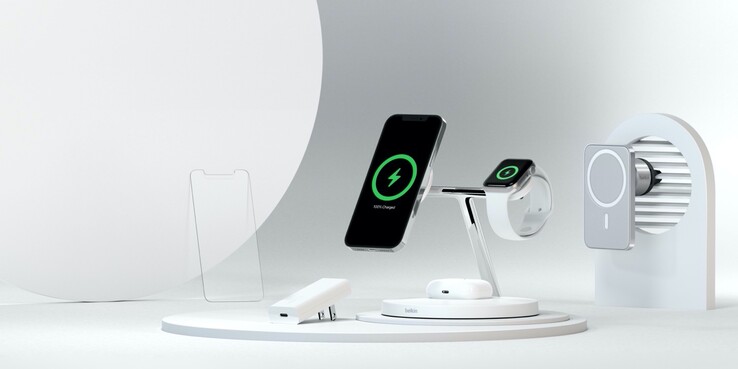 Nun hat Belkin einige neue MagSafe-Produkte vorgestellt, allen voran eine Ladestation, an der das iPhone ausschließlich durch Magnete festgehalten wird – der Ladepuck selbst erinnert dabei stark an jenen, der bei der Apple Watch zum Einsatz kommt. Dabei bietet eine Ladestation in diesem Stil neben dem eleganten Aussehen noch einen weiteren Vorteil: Das iPhone 12 kann mit einem regulären Qi-Ladegerät nur mit bis zu 7,5 Watt geladen werden, mithilfe von MagSafe steigt die Geschwindigkeit allerdings auf 15 Watt.