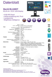 Eingebaute 2x 1-Watt-Lautsprecher und Anschlüsse wie HDMI 1.4, VGA, DisplayPort (DP 1.2) und ein Kopfhöreranschluss runden die Ausstattung des BL2480T ab. BenQ gewährt 3 Jahre Garantie inklusive Vor-Ort-Austausch-Service auf den BL2480T.