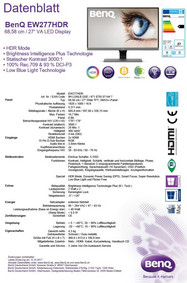 Der aktuelle Neuzugang im Display-Portfolio von BenQ heißt EW277HDR. Wie der Modellname andeutet, hat BenQ den neuen 27-Zoll-Monitor für den Genuss von HDR-Entertainment-Inhalten optimiert. Laut BenQ bietet der EW277HDR mit VA-Panel (Vertical Alignment) einen Kontrast von 3000:1 und eine Farbskala, die 93 Prozent des Farbraums DCI-P3 und den Farbstandard Rec. 709 zu 100 Prozent abdeckt. Die Auflösung beträgt 1.920 x 1.080 Pixel.