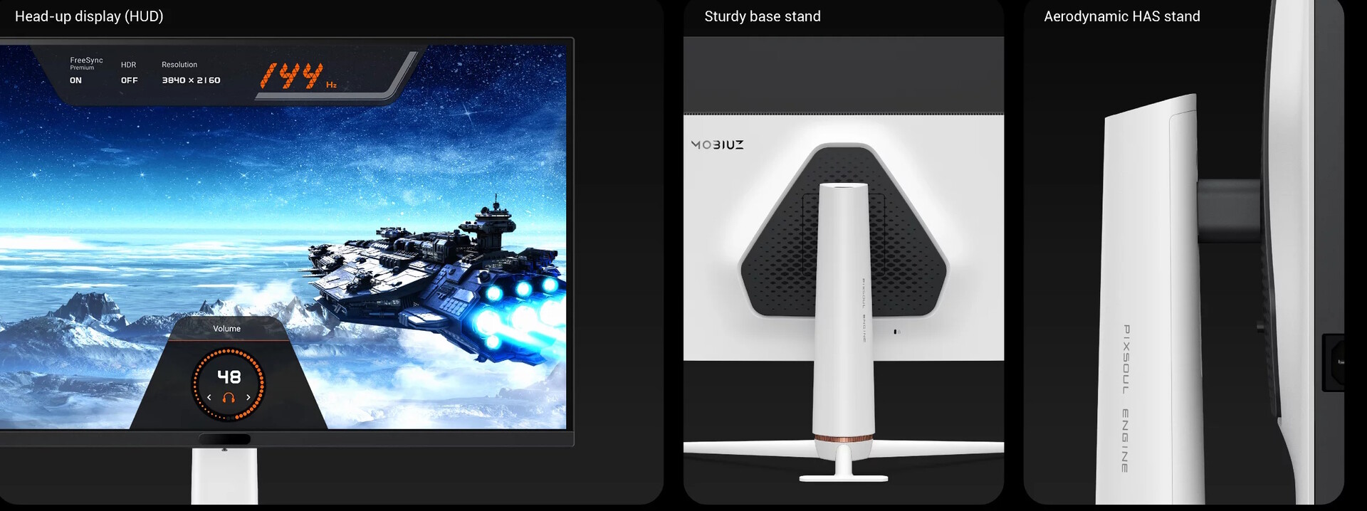 Besonders beworben wird die Nutzung an beziehungsweise mit Konsolen: So wird eine Bildwiederholfrequenz von 120 Hz dann unterstützt, HDMI 2.1 und eARC stehen bereit. Das Panel selbst kann eine Bildwiederholfrequenz von 144 Hz darstellen und unterstützt mit AMD FreeSync Premium Pro die Synchronisation der Bildausgabe mit der Bildanzeige. Herstellerangaben zufolge wird eine Helligkeit von bis zu 600 cd/m² unterstützt. Der Bildschirm bietet eine Auflösung von 3.840 x 2.160 Pixeln - eine niedrigere Auflösung wäre bei einem 37,5 Zoll großem Panel freilich auch nicht wirklich sinnvoll. Die Grau-zu-Grau-Reaktionszeit beziffert BenQ mit einer Millisekunde, der DCI P3-Farbraum wird Herstellerangabe zufolge zu 98 Prozent abgedeckt.