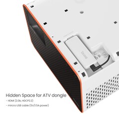 Bei den Anschlüssen nennt BenQ für den X3100i neben 3x HDMI-1 (2.0b/HDCP2.2) auch einen USB Typ-A Port, S/PDIF, RS-232 und eine 3,5-mm-Audiobuchse. Ein Android TV (ATV) Dongle als Streaming-Stick für HDMI sowie eine IR-Fernbedienung wird mitgeliefert. Der X3100i unterstützt Bluetooth 5.0, WLAN 802.11 a/b/g/n/ac (2,4 GHz/5 GHz), drahtlose Projektion via AirPlay, Google Cast, Miracast. Als vorinstallierte App ist Netflix drauf. Den Stromverbrauch des X3100i beziffert BenQ mit maximal 360 Watt.