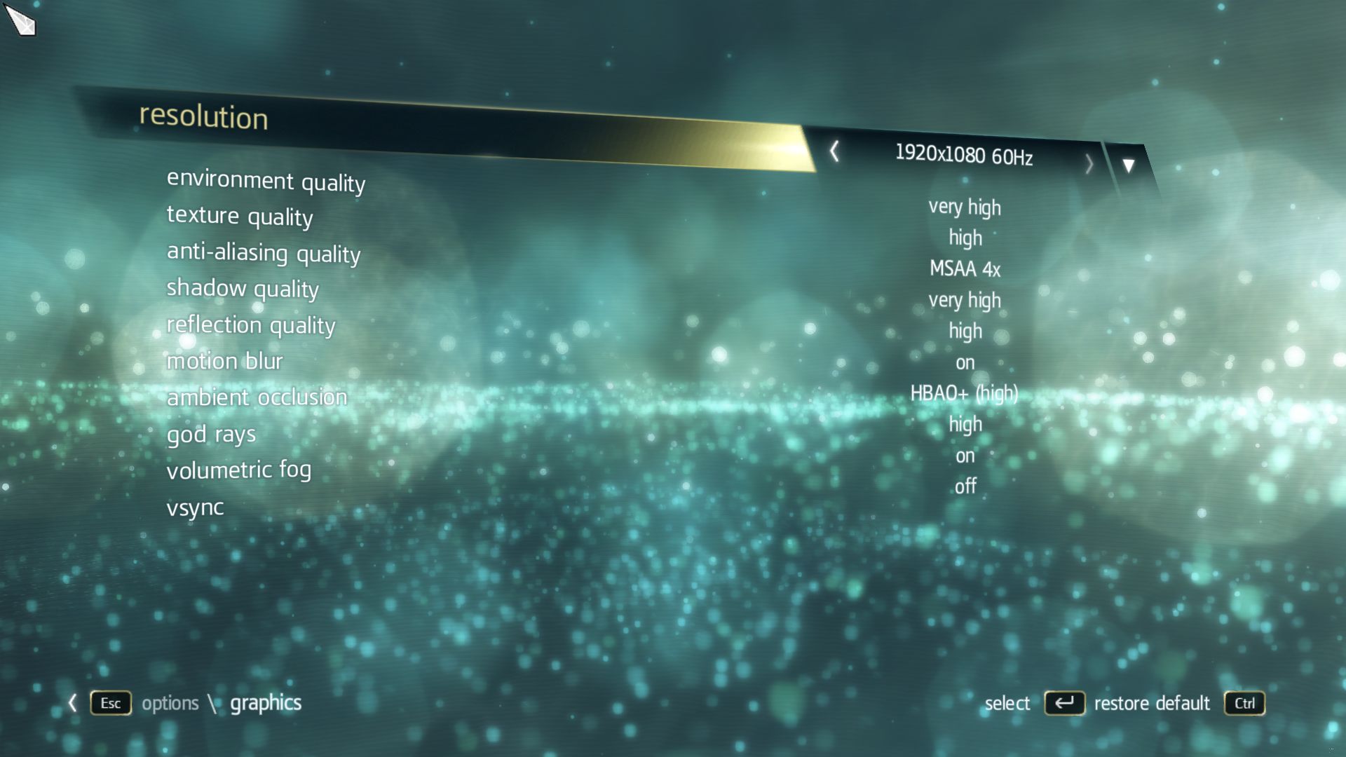 Lob gibt es hingegen für das aufgeräumte Grafikmenü, das jederzeit zugänglich ist und direkte Änderungen ohne einen Neustart des Spiels erlaubt. Hier finden sich zahlreiche technische Finessen wie volumetrischer Nebel, Ambient Occlusion (SSAO oder HBAO+) und sogenannte God Rays. Während man einige Punkte nur an- bzw. ausschalten kann, reichen die Qualitätseinstellungen von (Very) Low bis (Very) High. Respekt gebührt dem Entwickler auch für die Unmengen an Kantenglättungs-Modi. Neben den hardwareschonenden Post-FX-Varianten SMAA und FXAA stehen auch das rechenintensivere MSAA, EQAA (AMD) und CSAA respektive TXAA (Nvidia) parat.