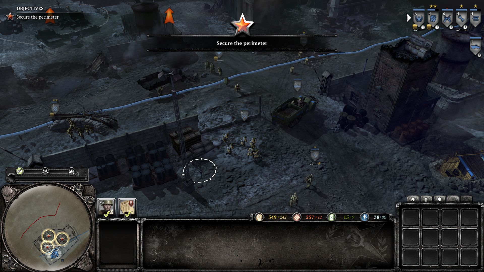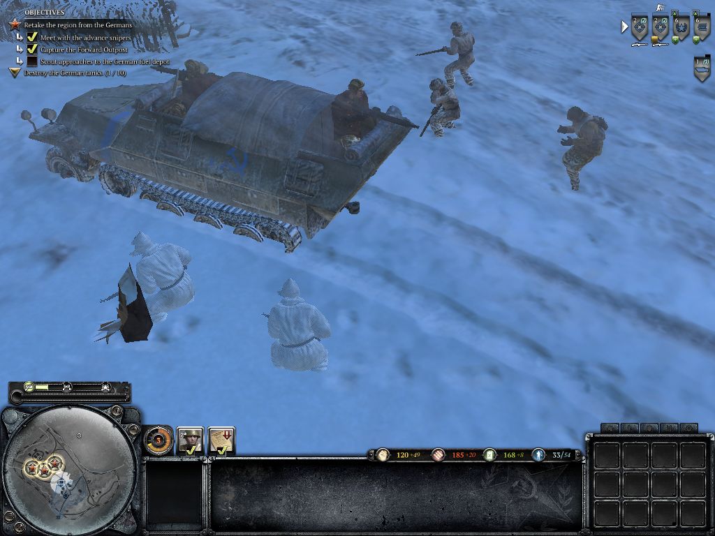 In Kombination mit dem nervenaufreibenden Missionsdesign entsteht ein intensives Spielgefühl. Relic hat sich sichtlich Mühe gegeben, den Einsätzen ordentlich Tempo zu verpassen. Dank wechselnder oder sekundärer Missionsziele (teilweise mit Zeitdruck und an mehreren Fronten) wird dem Spieler keine Verschnaufpause gegönnt. Nette Details wie frierende Soldaten, die sich an Lagerfeuern aufwärmen müssen, oder Panzer, die in Eisflächen einbrechen, bereichern das Spielerlebnis zusätzlich.