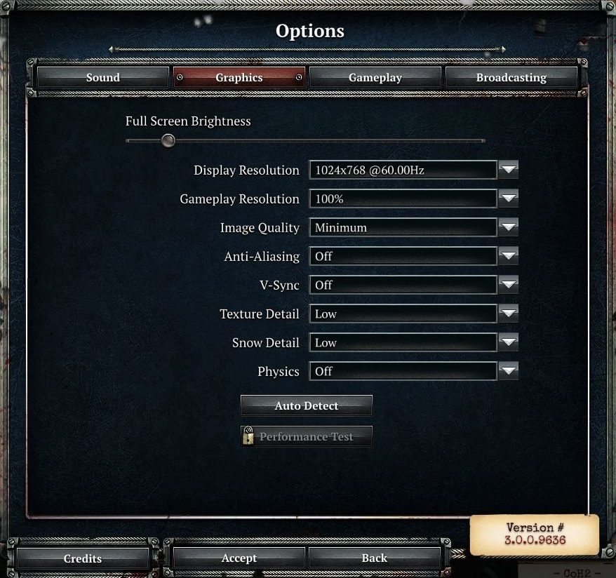 Etwas schade finden wir zudem, dass man die Settings nur im Hauptmenü anpassen kann. Der »Graphics«-Reiter offenbart lediglich eine handvoll Einstellungsmöglichkeiten. So lässt Relic die Spieler an der Helligkeit, der Auflösung, der Bildqualität, der Kantenglättung, der vertikalen Synchronisation (verhindert unschöne Treppeneffekte), der Physik und den Schnee- respektive Texturdetails schrauben. Die ominöse »Gameplay Resolution« sollte – sofern das System nicht allzu lahm ist – unbedingt auf 100 % stehen, da das Bild sonst spürbar vermatscht.