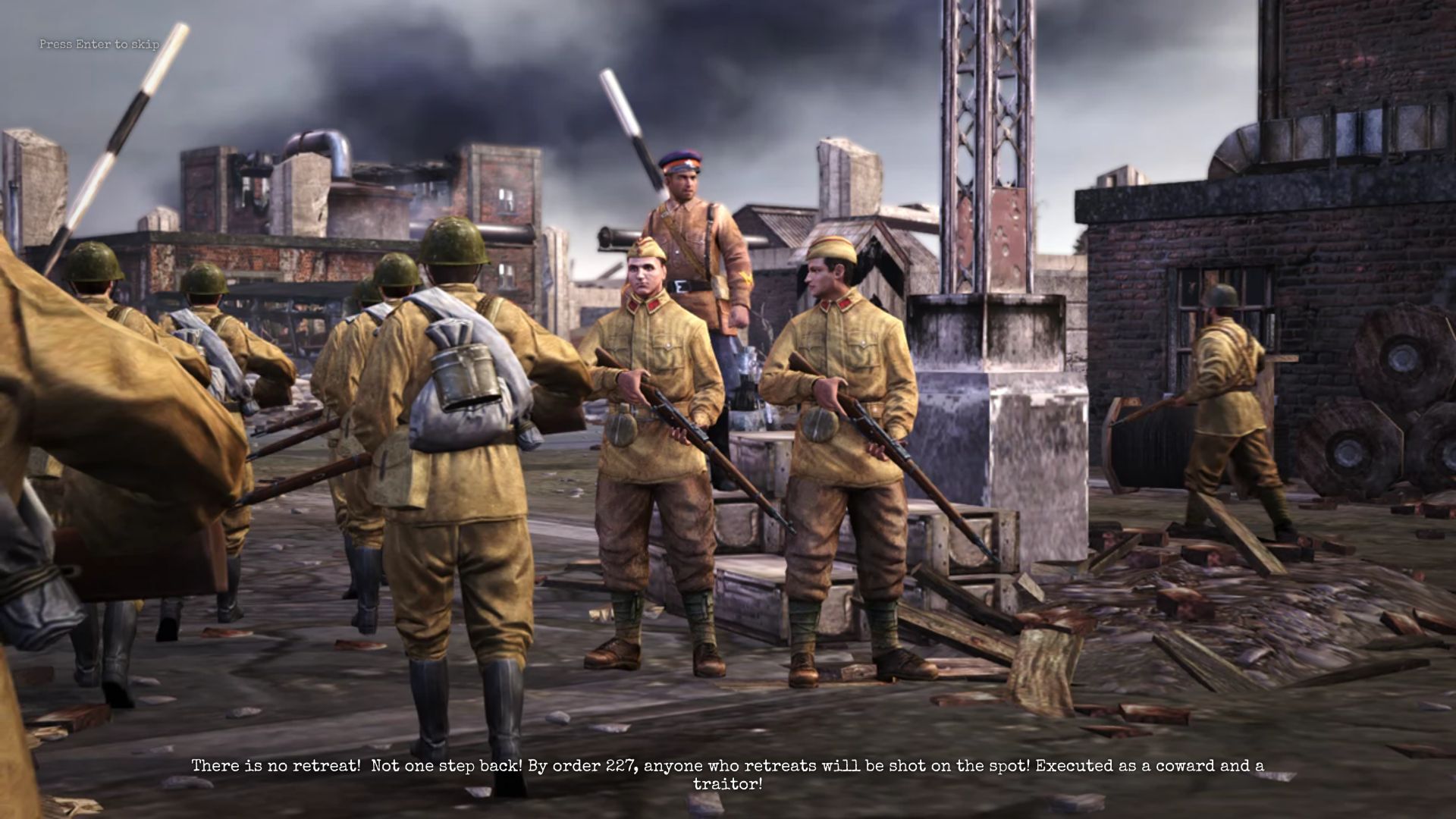 Für einen Titel aus dem RTS-Genre ist Company of Heroes 2 recht storylastig. So versucht der Entwickler – im Gegensatz zu manchem Kontrahenten – eine richtige Geschichte zu erzählen. Die Ausgangssituation lässt sich dabei in aller Kürze zusammenfassen. Company of Heroes 2 handelt vom sowjetischen Armee-Leutnant Isakovich, der in einem sibirischen Internierungslager von einigen Landsleuten gefangen gehalten und befragt wird (hat jemand Black Ops gesagt?). In Rückblenden darf der Spieler an vergangenen Einsätzen teilnehmen.