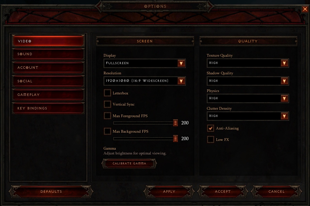 Im Gegensatz zu anderen Spielen ist zwischen der niedrigsten und der höchsten Einstellung kein himmelweiter Unterschied. Zwar verschlechtert sich mit reduzierten Details die Texturqualität, im Eifer des Gefechts macht sich dieser Umstand aber nur selten bemerkbar. Die weicheren respektive komplett deaktivierten Schatten ziehen die Atmosphäre schon eher nach unten. Fehlendes Anti-Aliasing äußerst sich derweil in einer sichtbaren Treppchenbildung. Besonders beim Hauptcharakter und den NPCs werden schräge Kanten unruhig dargestellt. Wirklich mies sieht Diablo III allerdings nie aus.