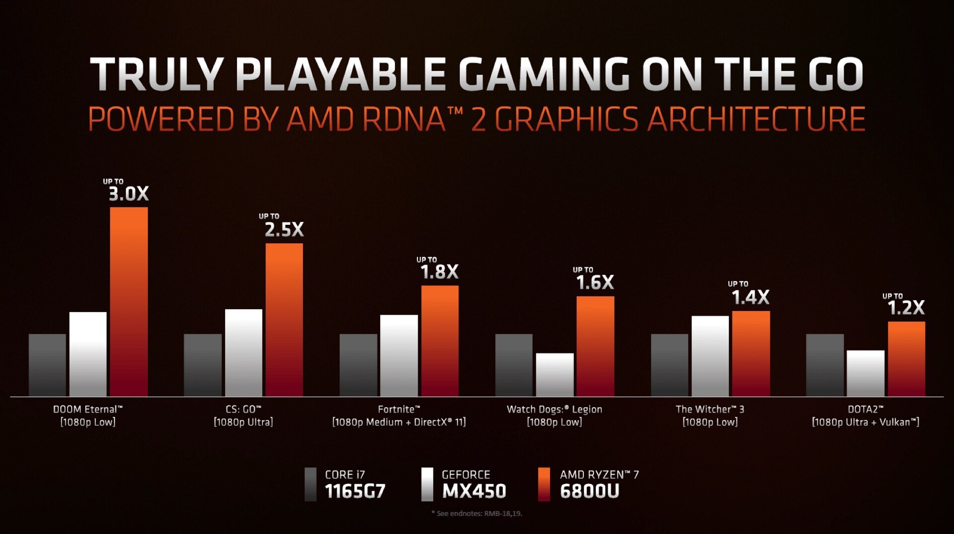 AMD hat nun die unten eingebetteten Benchmark-Ergebnisse geteilt, laut denen die neue iGPU auf RDNA 2-Basis im Vergleich zur Radeon RX Vega 8, die man von der Vorgängergeneration kennt, im Schnitt rund die doppelte Gaming-Performance erreicht. Auch die Intel Iris Xe Graphics G7 und die Nvidia GeForce MX450 können mit beachtlichem Abstand übertroffen werden, in Doom Eternal verspricht AMD die dreifache Performance im Vergleich zur aktuellsten iGPU von Intel. Hier dürfte nicht zuletzt die höhere Speicherbandbreite dank Unterstützung für DDR5-4.800- und LPDDR5-6.400-Arbeitsspeicher eine Rolle spielen.