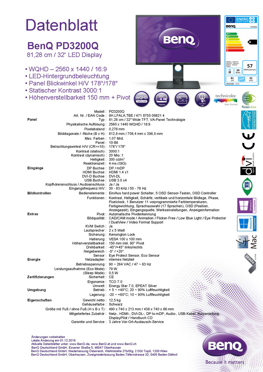 BenQ gewährt für alle Modelle der PD-Serie drei Jahre Garantie inklusive Vor-Ort-Austausch-Service.