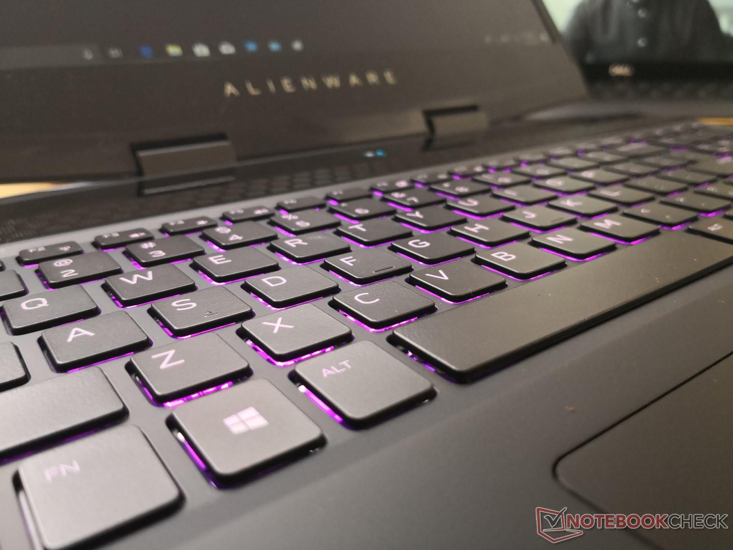 Allerdings erfordert die Schrumpfkur gegenüber dem bekannten Alienware 15 auch einige Kompromisse. Zunächst einmal wurde der Tastenhub von 2,2 mm beim Alienware 17 auf 1,8 mm reduziert. Die Tastaturbeleuchtung arbeitet in 4 Zonen und nicht individuell pro Taste, da sich das laut Dell negativ auf die Gehäusedicke auswirken würde. Auch die Lichtleiste am Bildschirmdeckel wurde gestrichen um die Bildschirmränder so schmal wie möglich zu machen.