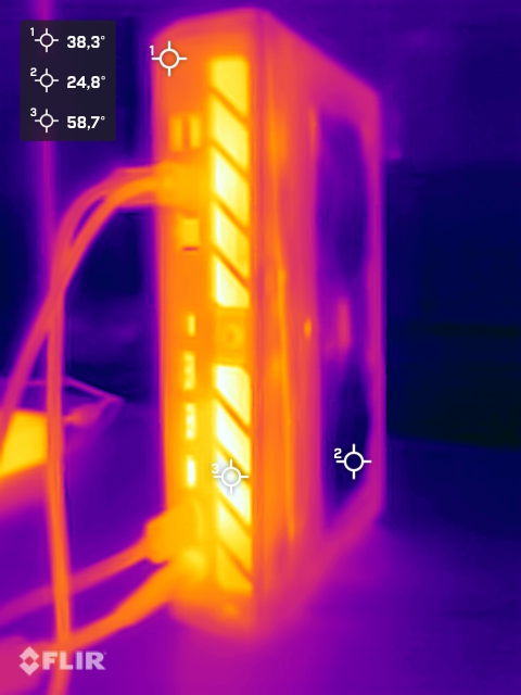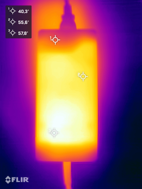 (+) Auf der Unterseite messen wir eine maximalen Wert von 39.2 °C (im Vergleich zum Durchschnitt von 36.3 °C).