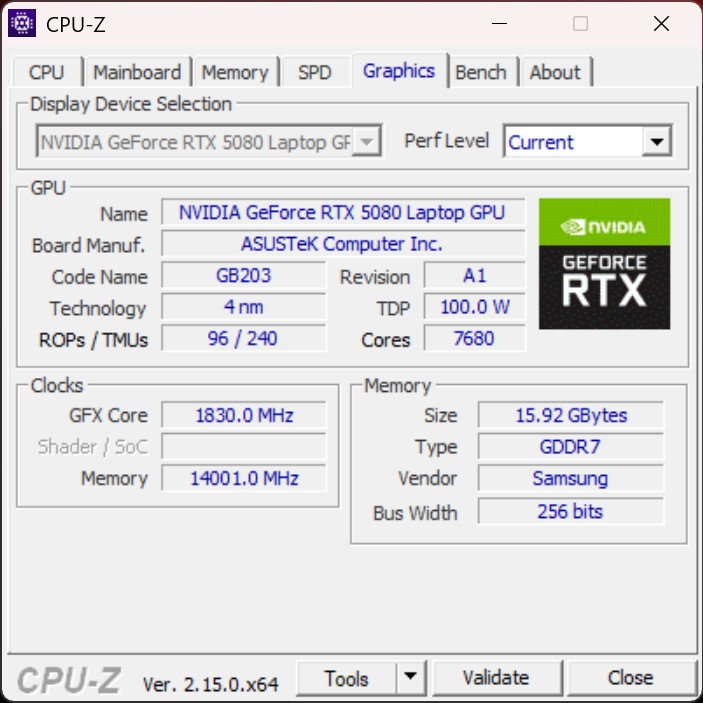 Mit der Nvidia GeForce RTX 5080 Laptop GPU samt 16 GB VRAM setzt der Asus ROG NUC 15 neue Maßstäbe in seiner Größenklasse. Im Leistungsvergleich platziert er sich klar an der Spitze und bietet Gaming-Performance auf höchstem Niveau. Der Vergleich zur Desktop-Variante der RTX 5080 hinkt zwar, zeigt aber eindrucksvoll, wie nah der Mini-PC an High-End-Systeme heranreicht. Erst mit deutlichem Abstand folgt der Minisforum AtomMan G7 Ti mit RTX 4070 Laptop GPU.
