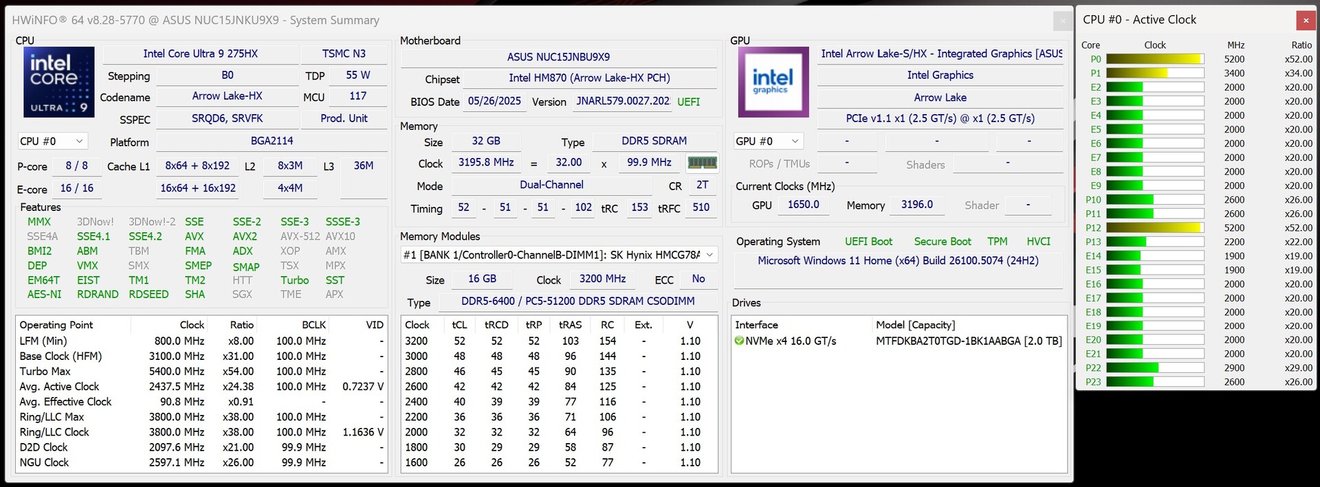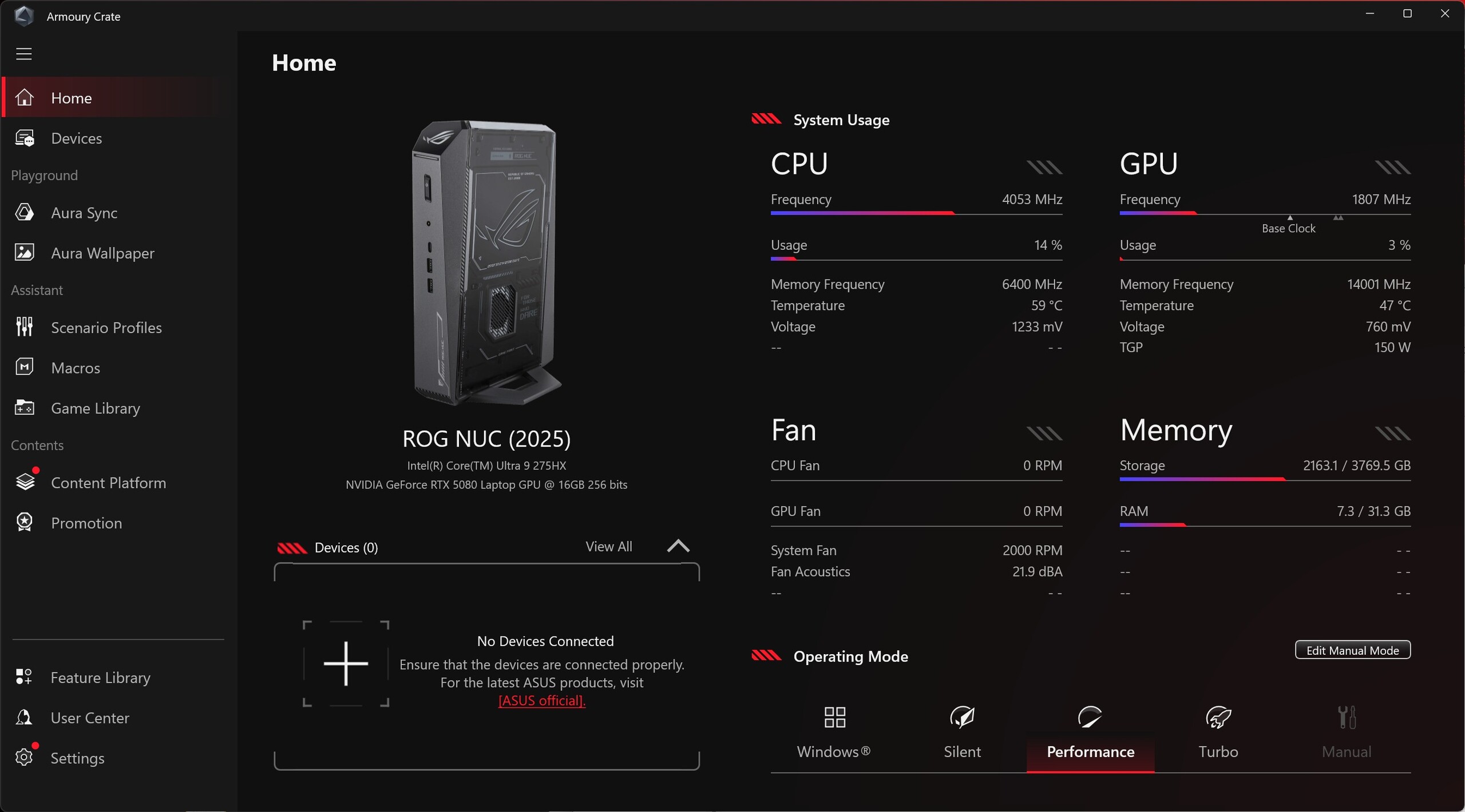 Das Topmodell des Asus ROG NUC 15 kombiniert den Intel Core Ultra 9 275HX mit der Nvidia GeForce RTX 5080 Laptop GPU und liefert so starke Leistung, auch für QHD-Gaming.
