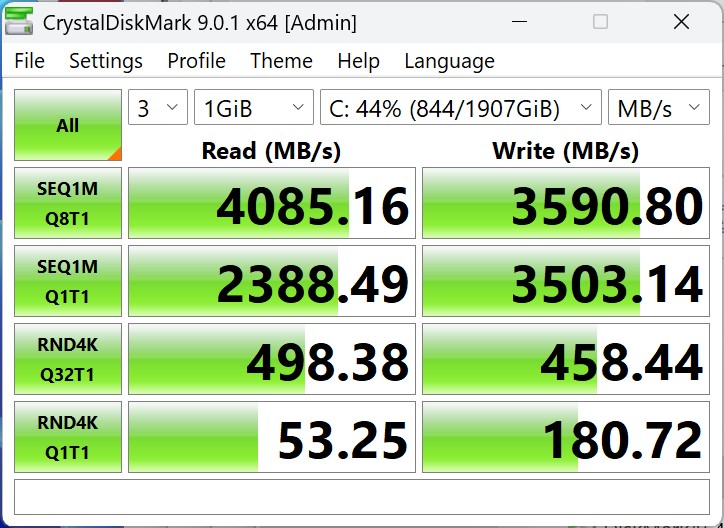 | Connectivity - USB 3.x / USB4 / TB - AS SSD Seq Read Test (1GB) | |
