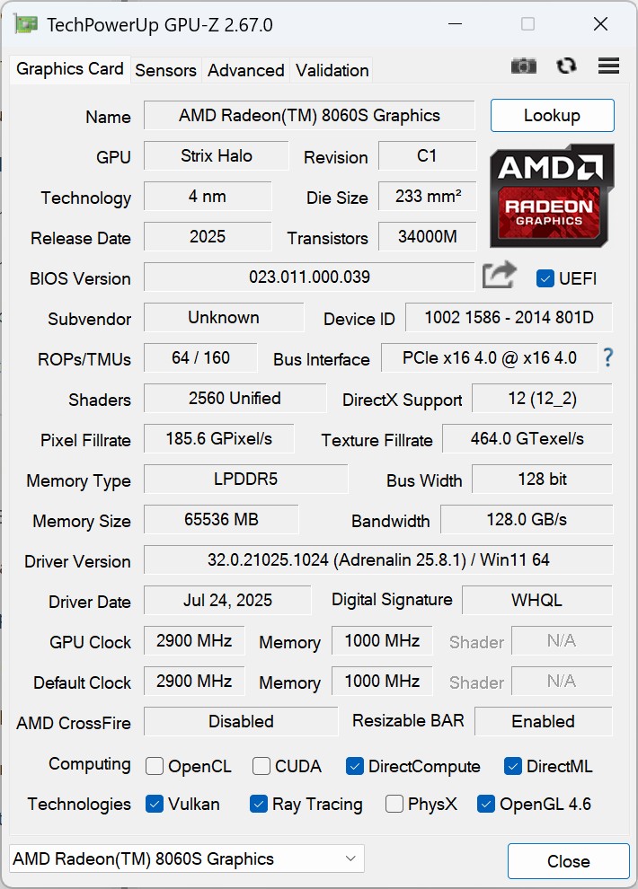 Der Bosgame M5 zählt zu den aktuell leistungsstärksten Mini-PCs auf dem Markt. In der getesteten Ausführung kommen ein AMD Ryzen AI Max+ 395 und eine AMD Radeon RX 8060S zum Einsatz. Satte 128 GB schneller LPDDR5X-8000-RAM stehen bereit, der zugleich auch von der leistungsfähigen iGPU genutzt wird. Besonders für lokal ausgeführte KI-Instanzen ist das ein klarer Vorteil, da der iGPU bis zu 96 GB zugewiesen werden können. Mit dieser Ausstattung hebt sich der Bosgame M5 deutlich von der breiten Masse anderer Mini-PCs ab.