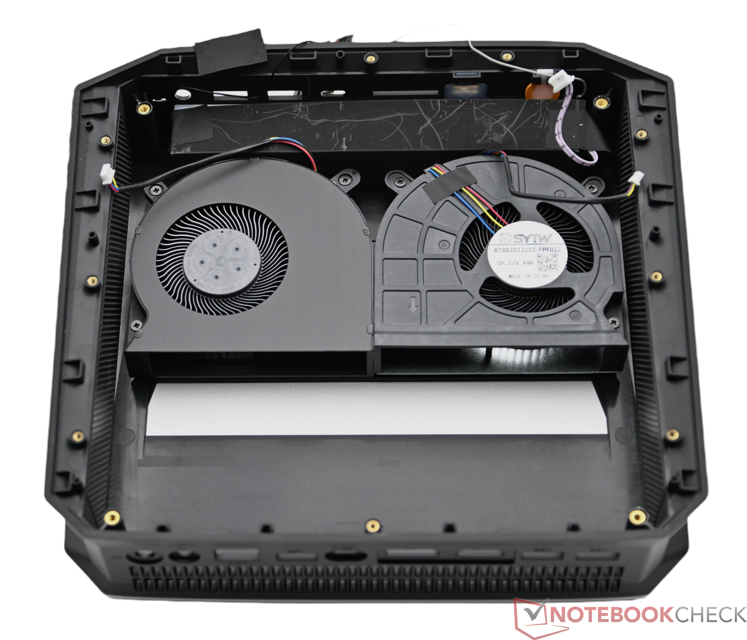 Lobenswert ist die Wartungsöffnung auf der Unterseite, um einen weiteren Massenspeicher zu installieren. Mehr Wartungsmöglichkeiten unterbindet der Hersteller aufgrund der Bauweise. Wer die Gummielemente auf der Unterseite entfernt, findet jedoch einige Schrauben, um das Gerät dennoch zu öffnen. Neben einem weiteren Massenspeicher lässt sich nur das WLAN-Modul austauschen.