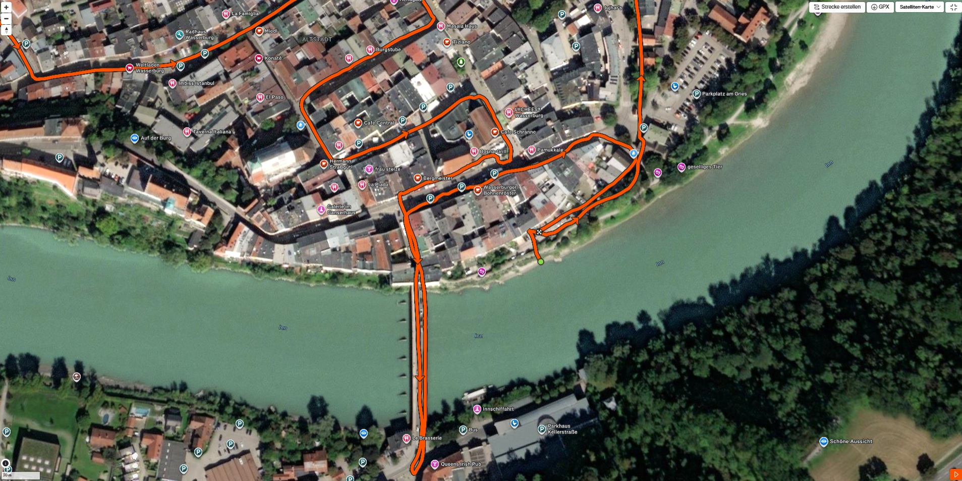 Unsere Fahrradrunde zeigt eine gute, wenn auch nicht völlig exakte Platzierung auf Straßen und Wegen. Für die Navigation ist das Tablet ohne größere Einschränkungen nutzbar.