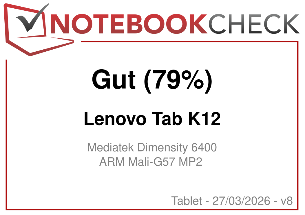 | Lenovo Tab K12 Mediatek Dimensity 6400 ⎘ ARM Mali-G57 MP2 ⎘ 12 GB RAM, 256 GB UFS 2.1 | Amazon: Bestpreis 346€ lapstars 2. 355€ notebookkontor.de 3. 368€ Alternate | 530 g | 256 GB UFS 2.2 Flash | 12.10" 2560x1600 249 PPI IPS | |