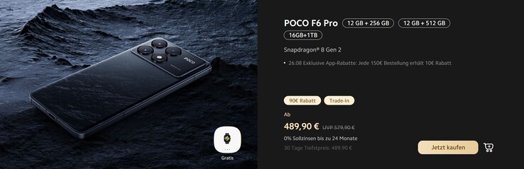 Im Rahmen des Sales ist das Poco F6 Pro bereits von Hause aus reduziert. Die kleinste Speichervariante mit 12 + 256 GB Speicher liegt bei 489,90 Euro statt der UVP von 579,90 Euro. Die Variante mit 12 + 512 GB kostet im Angebot 549,90 Euro statt 629,90 Euro, die Top-Ausstattung mit 16 GB + 1 TB liegt bei 679,90 Euro statt 699,90 Euro.