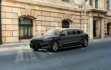 Coleman Milne hat den bereits erwähnten Ford Mustang Mach-E nun nämlich auf 5,83 Meter verlängert und dem Fahrzeug ein zusätzliches paar Türen verpasst, um aus dem amerikanischen Elektro-Crossover eine elegante Stretch-Limousine zu machen. Zum Schutz der Privatsphäre überaus wichtiger Menschen gibt es außerdem eine optionale Sichtschutzverglasung und eine Trennscheibe zwischen Fahrer- und Passagierkabine, in die bis zu sieben Personen passen sollen.