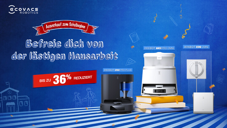 Großer "Back to School"-Sale bei Ecovacs. Der Spezialist für Saugroboter bietet viele spannende Produkte aus seinem umfangreichen Portfolio zu stark reduzierten Preisen an. Bis zu 500 Euro bzw. 36 Prozent lassen sich bis zum 10. September 2024 auf die unverbindlichen Preisempfehlungen sparen, zum Beispiel beim brandneuen Saug- und Wischroboter-Flaggschiff Ecovacs Deebot X5 Omni.