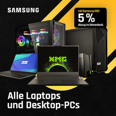 Den Black-Friday-Rabatt (in Prozent) gibt es durch automatischen Abzug im Warenkorb für jeden Laptop oder Desktop-PC mit einer Samsung-SSD. Eine Samsung 980 mit 500 GB gehört ohnehin zur Basisausstattung fast jedes Modells und lässt sich bei Bedarf durch schnellere und größere Laufwerke bis hin zur 4 TB großen 990 PRO aufrüsten. Durch die Eingabe des Gutscheincodes „laptop-50“ gibt es noch einmal zusätzlich 50 Euro Nachlass auf jeden Laptop.