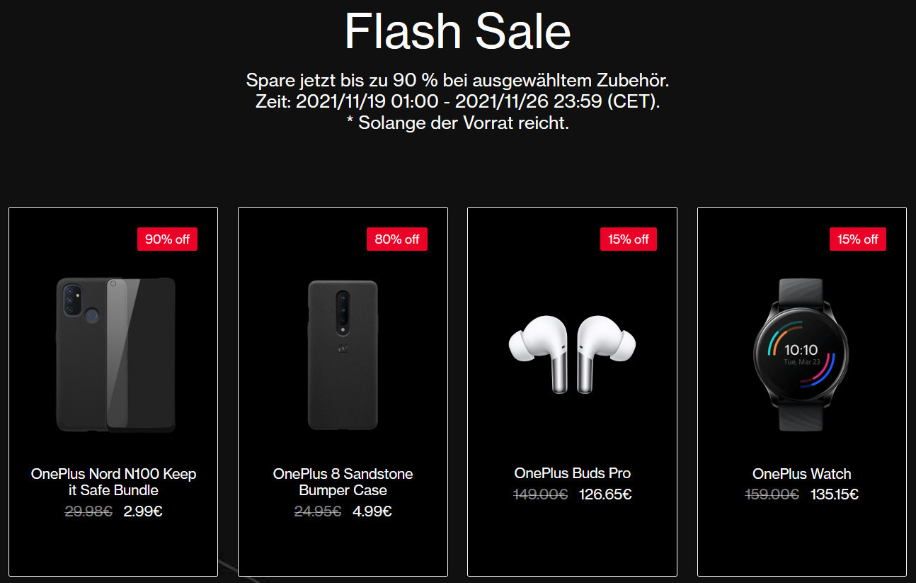 Außerdem gibt es bei der OnePlus Black Friday Aktion jede Menge Angebote und Deals mit teils krassen Rabatten. So ist beispielsweise das OnePlus Nord N100 Keep it Safe Bundle mit OnePlus Nord N100 Bumper Case und OnePlus Nord N100 PET Screen Protector drastisch im Preis reduziert. OnePlus gewährt unglaubliche 90 Prozent und verkauft das Keep It Safe Bundle nicht für den sonst gültigen UVP von 29,98 Euro, sondern zum Wahnsinns-Black-Friday-Preis von sage und schreibe 2,99 Euro.