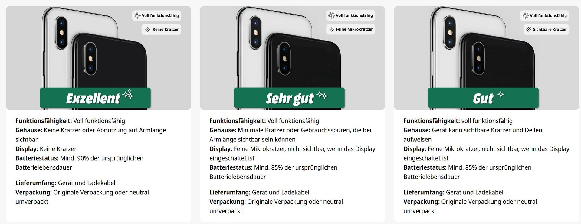 Refurbished bedeutet, die Konsolen wurden auf ihre Funktionstauglichkeit überprüft und generalüberholt. Das ist der Wesentliche Vorteil im Vergleich zum Privatkauf. Die Preise liegen tendenziell leicht über dem, was auch auf Online-Marktplätzen wie eBay aufgerufen wird. Wie gut der Zustand ist, gibt MediaMarkt anhand von drei Qualitätsstufen an: „Exzellent“, „Sehr Gut“ und „Gut“.