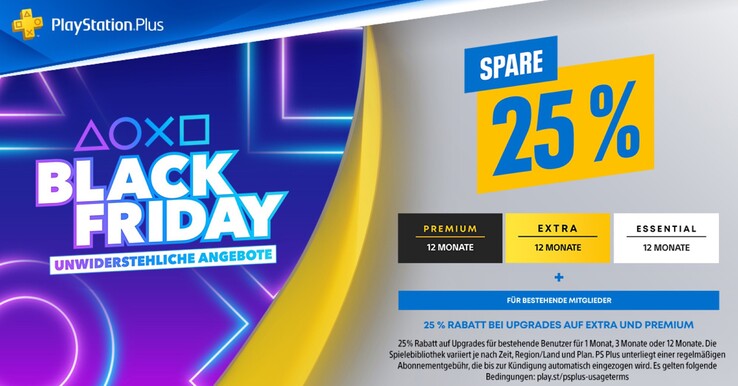PlayStation-Nutzer können ab sofort bis zum 28. November zahlreiche Rabatte ergattern, angefangen bei PlayStation Plus Abonnements. Wer ein einjähriges Abonnement für PlayStation Plus Essential, Extra oder Premium abschließt, bezahlt im Rahmen dieser Aktion 25 Prozent weniger als üblich. Damit kostet ein Jahr PlayStation Plus Essential 44,99 Euro, ein Jahr Extra samt Zugriff auf Sonys Spiele-Katalog wird für 74,99 Euro angeboten, ein Jahr Premium inklusive Cloud-Streaming kostet aktuell 89,99 Euro.