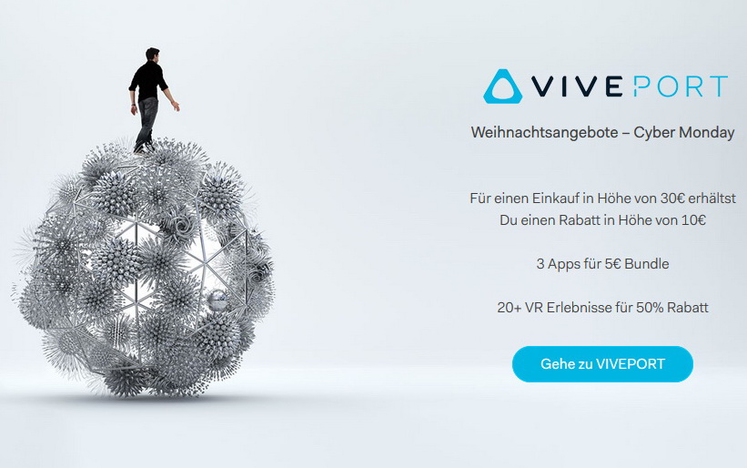 Wer gleich mehr als 20 Vive Apps auf Viveport kauft, der erhält laut HTC im Zeitraum von Black Friday und Cyber Monday sogar einen Preisnachlass von 50 Prozent. Weitere Details zum Vive-Sales-Wochenende von HTC finden sie hier.