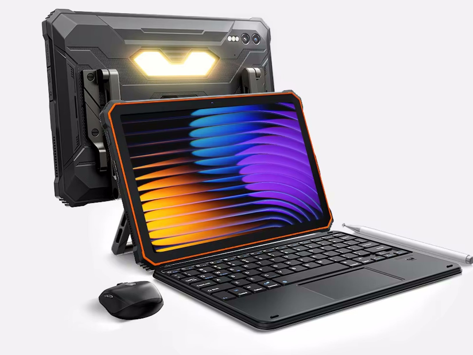 Wir haben das Tablet bereits vorgestellt - es handelt sich um ein durchaus ordentlich ausgestattetes Tablet. So kommt mit dem MediaTek Dimensity 7300 ein SoC mit einem 5G-Rechenchip zum Einsatz, welcher auf einen mit 12 Gigabyte auch mehr als nur ausreichend dimensionierten Arbeitsspeicher zugreifen kann. Der interne, 512 Gigabyte große Speicher lässt sich mithilfe einer Speicherkarte unkompliziert erweitern, dann fällt aber die bei einem Tablet wahrscheinlich eher selten genutzte Möglichkeit zur Nutzung mit zwei SIM-Karten weg. Der 30.000 mAh starke Akku lässt sich mit 55 Watt aufladen. Der große Akku sorgt ebenso wie die robuste Ausführung mit Zertifizierungen nach IP68, IP69K und MIL-STD-810H für sehr große Abmessungen von 267,6 x 179 x 19,5 Millimeter und einem Gewicht von stolzen 1.214 Gramm.