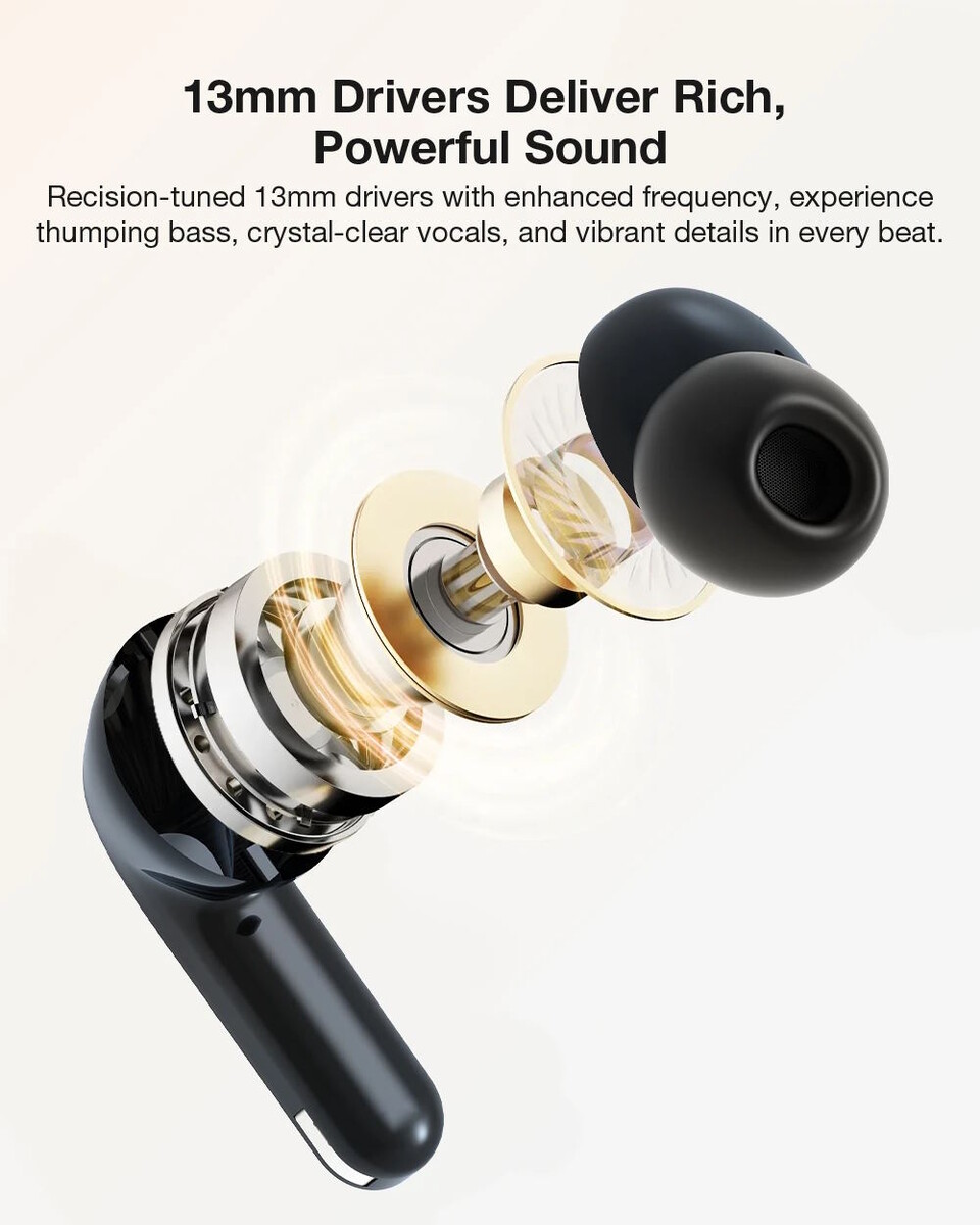 Das Set besteht aus einem Paar In-Ear-Kopfhörern und einem Paar Semi-In-Ear-Kopfhörer. Letztere werden damit eher in das Ohr eingelegt als wirklich in den Gehörgang eingeschoben, was je nach persönlichen Vorlieben als angenehmer empfunden werden kann - der Halt etwa bei starken, körperlichen Aktivitäten wie etwa dem Lauf- oder Kraftsport kann durchaus ein Thema sein. Verbaut sind 13 Millimeter große Treiber, was einen relativ großen Durchmesser darstellt. Die Datenübertragung findet über Bluetooth 5.4 statt, eine besonders verlustarme oder verlustfreie Datenübertragung etwa über LDAC wird nicht unterstützt, was allerdings angesichts des Preises nicht überrascht. Selbiges gilt für das fehlende ANC.
