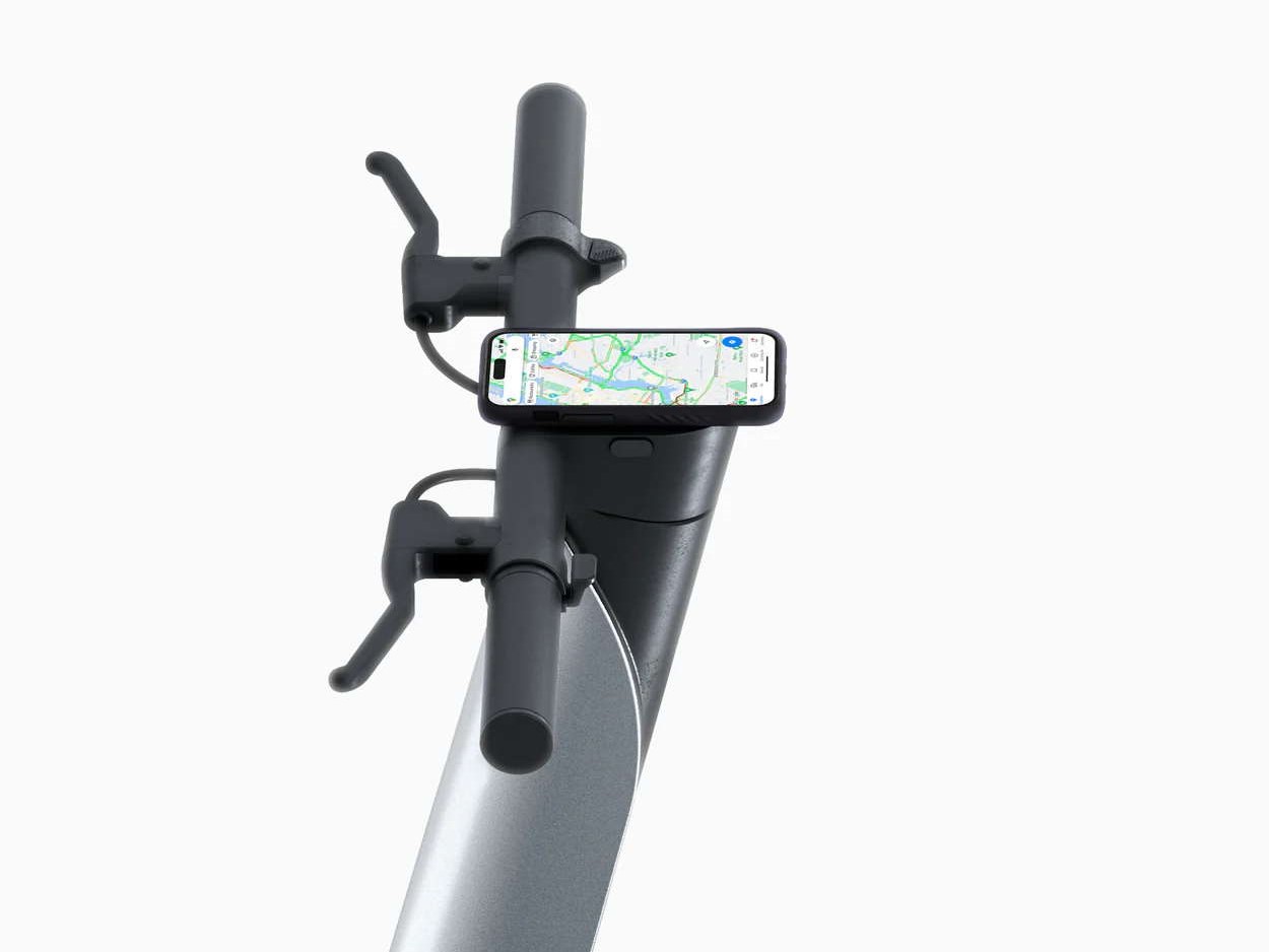 Die Reifen sind 2,5 Zoll breit und 10 Zoll groß, vorne kommen Trommelbremsen zum Einsatz - die Hinterradbremse ist zur Rekuperation fähig. Die Beleuchtung soll es auf eine Maximalleistung von 800 Lumen bringen. Ein Smartphone lässt sich befestigen. Beworben wird der aus einem Aluminium-Teil gefertigte Rahmen.