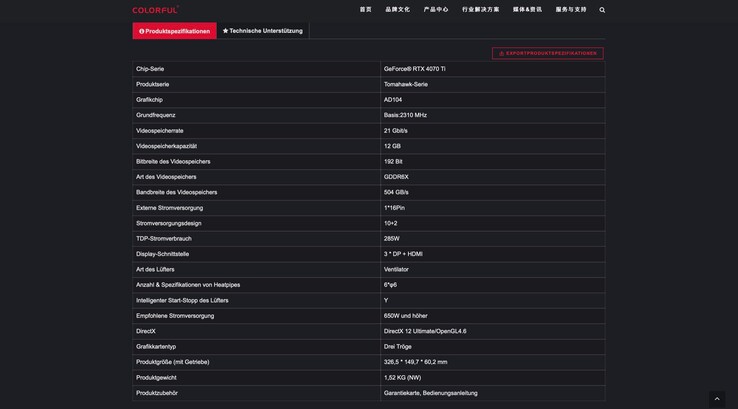 Schon seit Wochen gibt es Gerüchte dazu, dass die GeForce RTX 4070 Ti im Januar offiziell vorgestellt wird, und zwar als Neuauflage der eingestampften GeForce RTX 4080 12 GB. Der Board-Partner Colorful hat diese Tatsache nun offiziell bestätigt, denn eine mittlerweile entfernte Produktseite hat sämtliche Spezifikationen der GeForce RTX 4070 Ti verraten, die exakt mit den Specs der GeForce RTX 4080 12 GB überein stimmen.