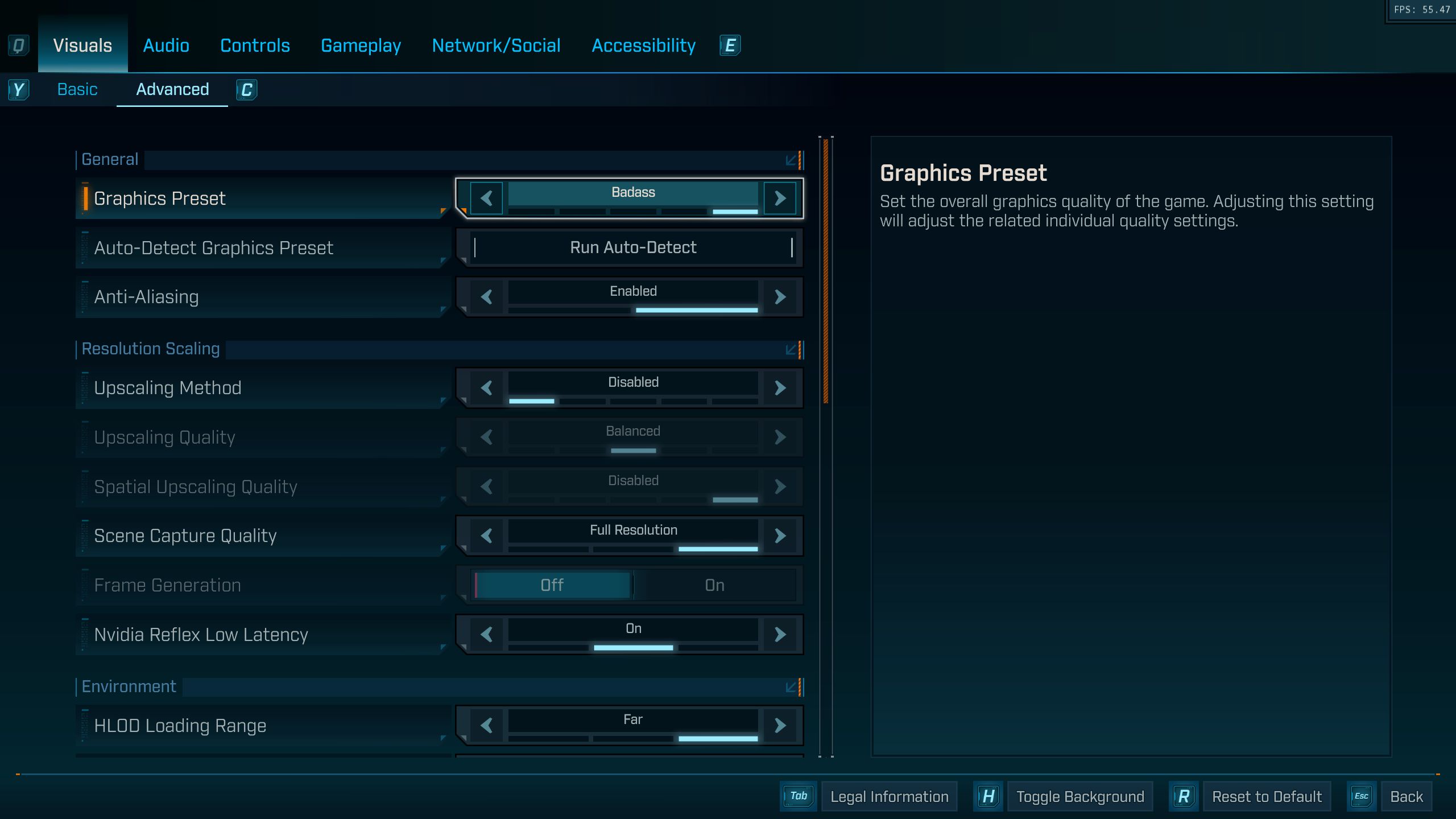 PC-Nutzer dürfen sich außerdem über ein umfangreiches Grafikmenü freuen, was zugunsten der Übersicht auf zwei Reiter aufgeteilt wurde. Während sich „Basic“ um grundlegende Aspekte wie zum Beispiel die Auflösung kümmert, warten im „Advanced“-Bereich mehr als 20 Stellschrauben. Praktischerweise haben die Entwickler mehrere Presets integriert, die von Low bis hin zu Badass reichen. Moderne Techniken wie Frame Generation sind ebenfalls an Bord. Als Upscaling-Modi werden zudem alle aktuellen Varianten, also DLSS, FSR und XeSS unterstützt. Änderungen werden dabei ohne Neustart übernommen, was entsprechend Zeit spart. Zeit kostet beim ersten Start eher das Shader optimieren, wie man es inzwischen aus diversen Titeln gewohnt ist.