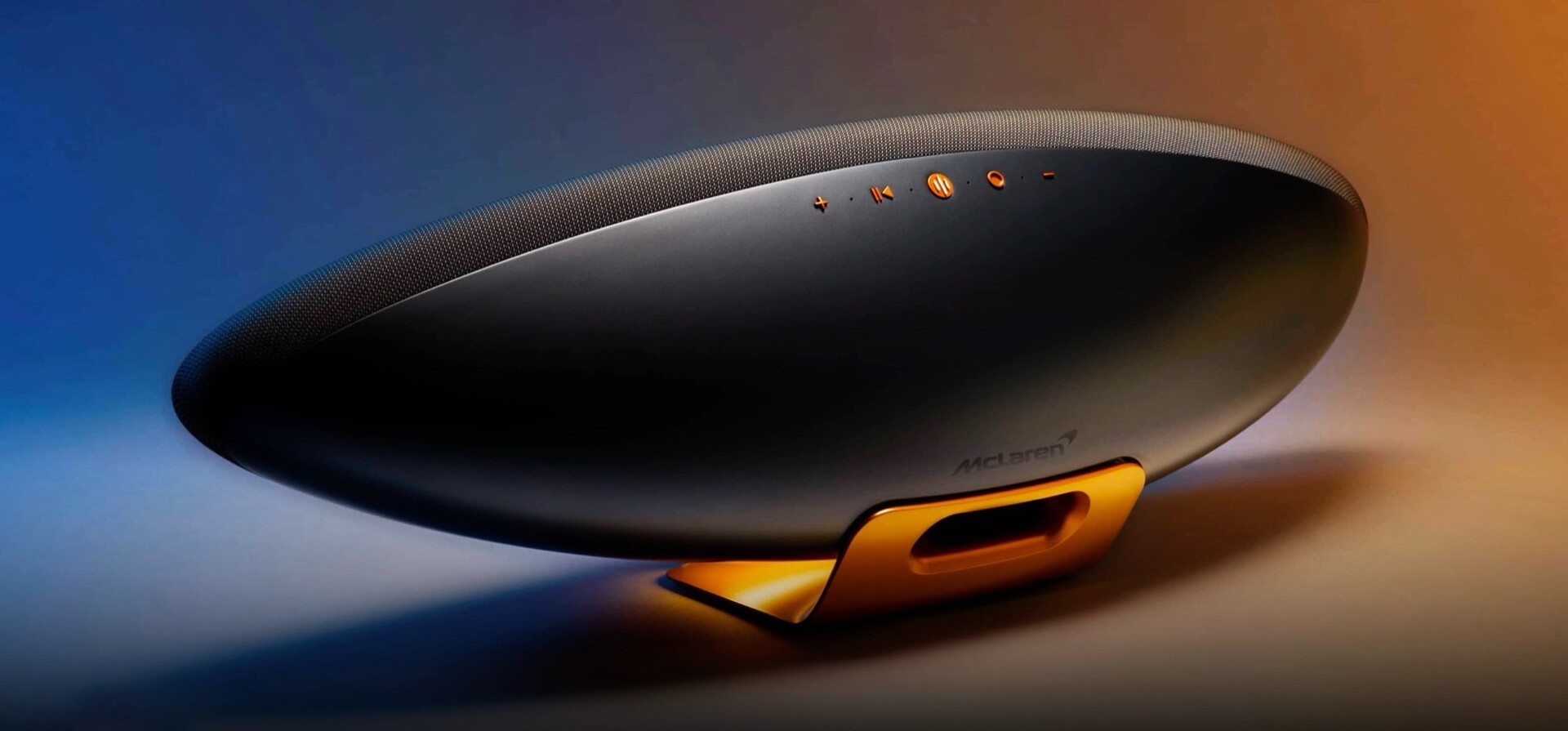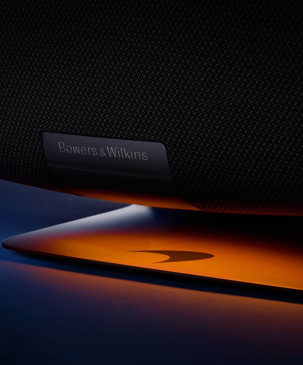 Die brandneue McLaren Edition ist technisch identisch mit dem regulären B&W Zeppelin, erhält aber einen Standfuß und Buttons in Orange, sowie ein großes McLaren-Logo auf der Rückseite. Unter der Stoffabdeckung finden sich insgesamt fünf Treiber, inklusive 150 Millimeter Subwoofer, zweier 90 Millimeter FST-Mitteltöner und zweier 25 Millimeter Doppelkalotten-Hochtöner. Diese Hochtöner sitzen an den beiden Enden des 65 Zentimeter breiten Gehäuses, wodurch ein besonders räumlicher Klang ermöglicht werden soll.