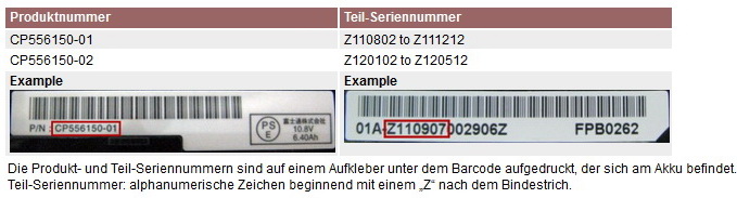 Gemäß Fujitsu sind Akkus mit den folgenden Produktnummern und Teil-Seriennummern von der Rückrufaktion betroffen und müssen ausgetauscht werden: