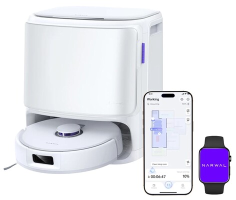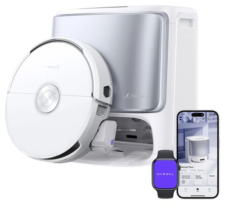 Aber nicht nur beim Wischen weiß der Flow zu begeistern. Auch beim Saugen sorgt er mit 22.000 Pa Saugleistung für saubere Teppiche und Co. Weitere Stärken des Narwal Flow sind unter anderem die smarte Navigation und KI-Hinderniserkennung samt zweier RGB-Kameras und das mit 95 mm ultraflache Design zum Reinigen unter Möbeln und Co. Dank der Station im Lieferumfang wird der Saug- und Wischroboter während und nach der Arbeit zudem gründlich gereinigt.