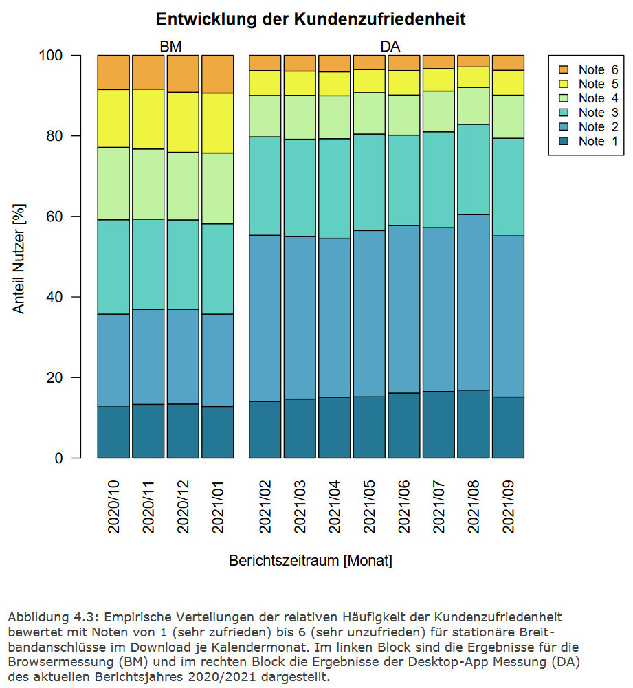 - Die meisten Kunden (80,3 Prozent) waren mit der Leistung ihres Breitbandanschlusses zufrieden (Noten 1 bis 3).