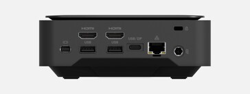 Die in den Prozessor integrierte Intel Iris Xe Graphics G7 mit 96 Execution Units unterstützt den Anschluss von bis zu vier 4K-Monitoren, die über zwei HDMI 2.1-Anschlüsse, über einen mini-DisplayPort und über zwei USB-C-Ports angesteckt werden können. Dazu gibts 2,5 Gbit/s Ethernet, fünf USB-A-Ports und einen Kopfhöreranschluss auf der Vorderseite.