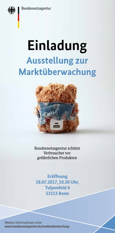 Wer sich einen Überblick über die von der Marktüberwachung aus dem Verkehr gezogenen Produkte verschaffen will, der hat ab nächsten Dienstag die Gelegenheit, den "Produktschrott" live und aus nächster Nähe anzusehen. Denn am Dienstag, 18. Juli 2017 eröffnet der Präsident der Bundesnetzagentur, Jochen Homann um 10.30 Uhr in der Bundesnetzagentur, Tulpenfeld 4 in 53113 Bonn die Ausstellung zur Marktüberwachung.