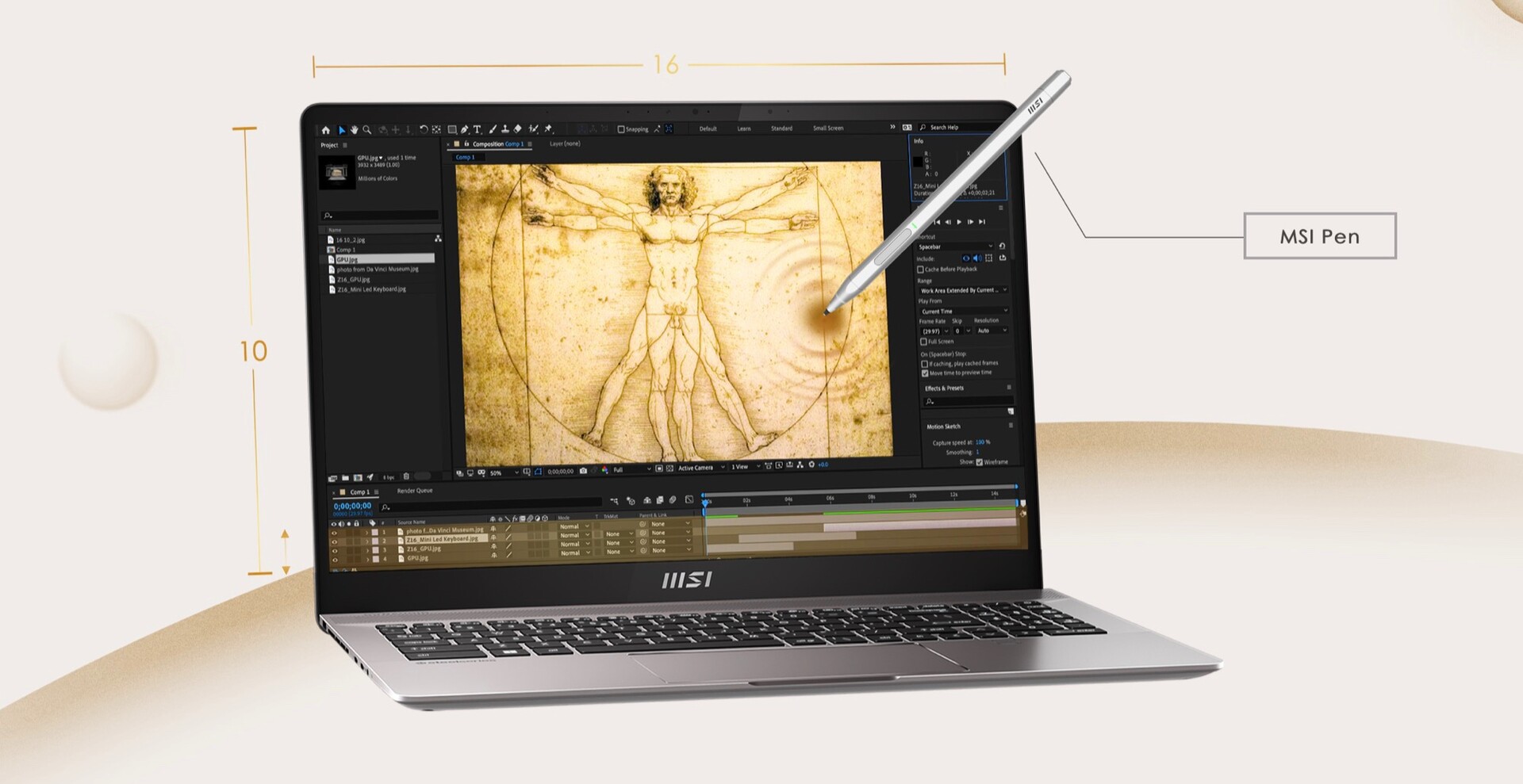 Der 16 Zoll Touchscreen ist im 16:10-Format ausgeführt und mit dem MSI Pen kompatibel. Mit einer Auflösung von 2.560 x 1.600 Pixel und einer Bildfrequenz von 165 Hz hat das Panel einiges zu bieten. Das MSI Creator Z16P ist trotz 90 Wh großem Akku gerade einmal 1,9 Zentimeter dünn. Der top ausgestattete Nvidia Studio Laptop kann für 4.649 Euro bestellt werden.